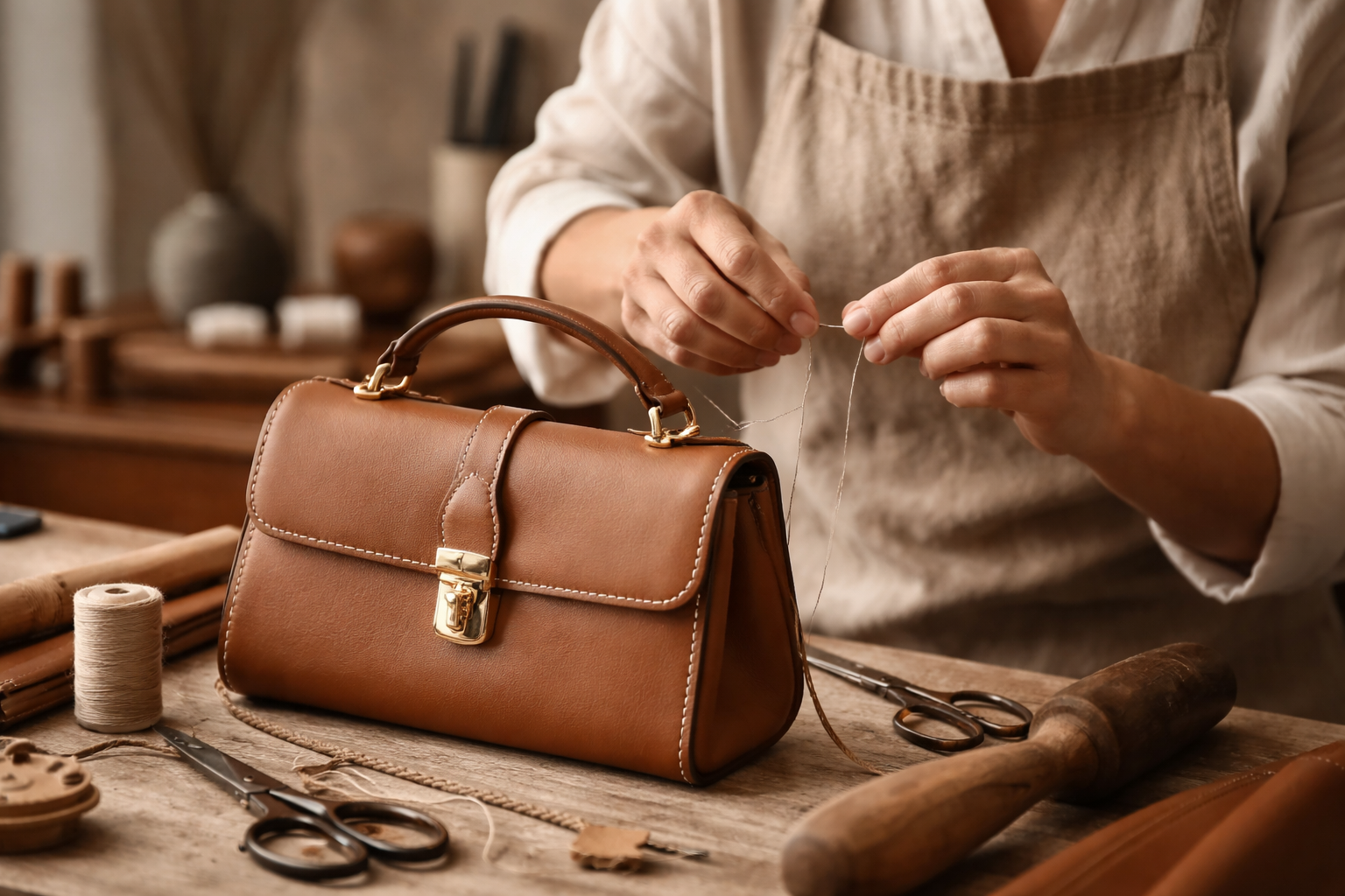 Ogni borsa è assemblata e rifinita a mano, con precisione e attenzione ai dettagli. Un lavoro fatto con calma, pensato per durare. Il risultato è una borsa curata, personale, fatta per accompagnarti a lungo.